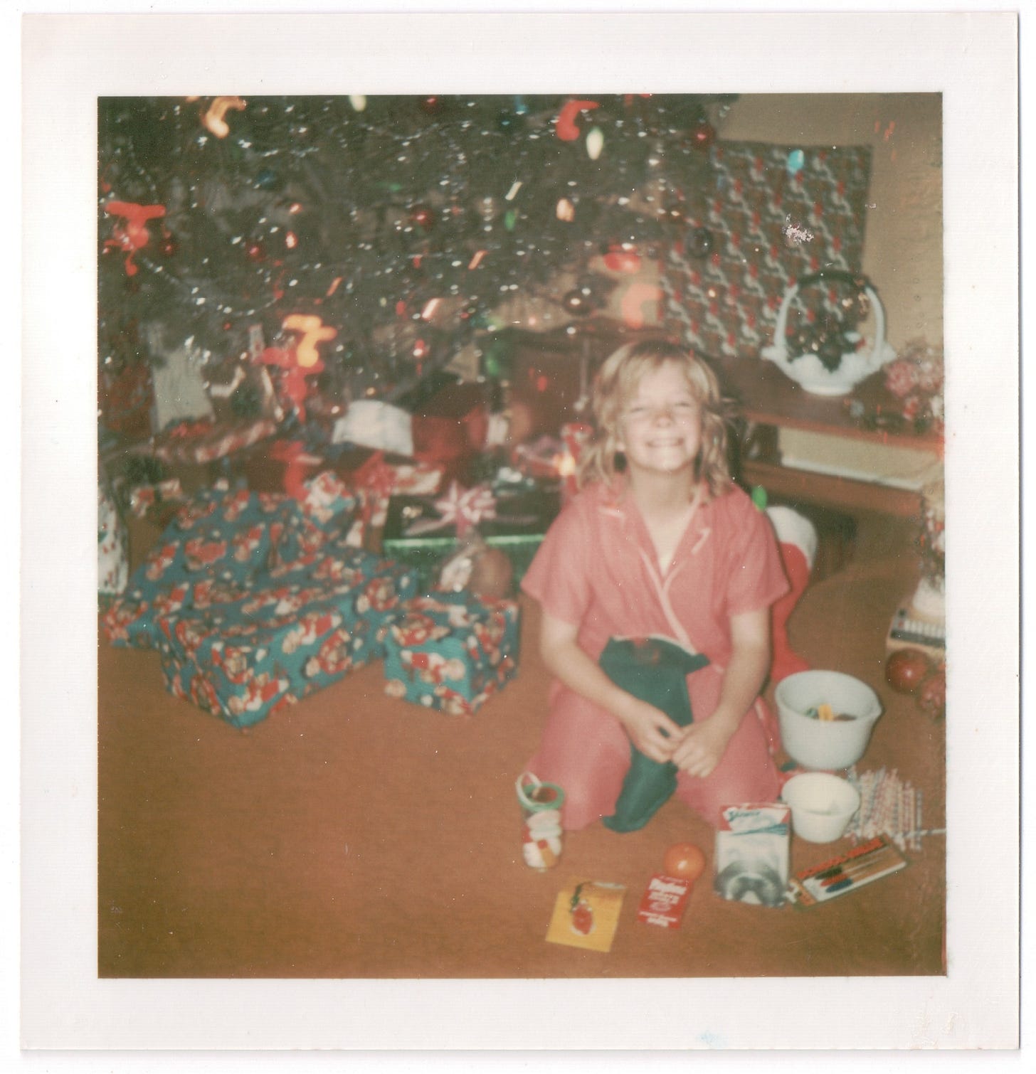 Ah polaroids. A little washed out and somewhat blurry, but still me and the tree, below. The giant stack of presents are out of the photo, but there’s the classic tree, icicles and cheese face. A slinky and pixie sticks for gifts, very classic of that year, and I loved both so much.